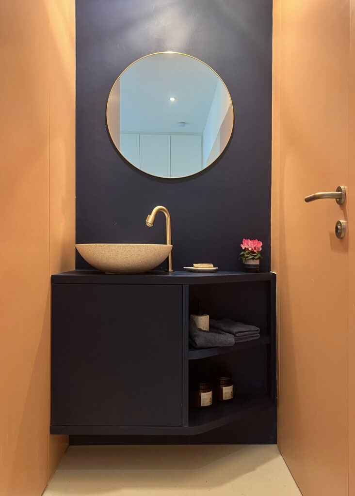 De volledige gelijkvloerse verdieping van deze charmante rijwoning in Gent werd grondig gerenoveerd en voorzien van een eigentijdse, strakke afwerking met een speels en kleurrijk karakter. Er werd zorgvuldig nagedacht over materiaalkeuzes en kleurcombinaties om een harmonieuze en uitnodigende sfeer te creëren. De naadloze gietvloer vormt een elegant geheel met het op maat gemaakte, kleurrijke meubelwerk, waardoor een visuele continuïteit ontstaat die de ruimte vergroot en een moderne uitstraling geeft. Houten accenten zijn subtiel geïntegreerd in het interieurontwerp, wat zorgt voor een warme en gezellige toets in de leefruimte. Deze combinatie van strakke lijnen, levendige kleuren en natuurlijke materialen resulteert in een stijlvolle, maar toch speelse woonomgeving waarin functionaliteit en esthetiek hand in hand gaan.